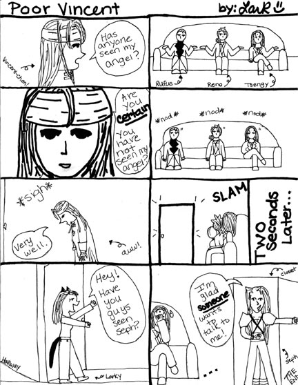Not one of my favorites story wise – this one is pretty lame. But I like the illustrations of Rufus, Reno and Tseng sitting on the couch – especially Tseng hitting himself in the face in the last panel.